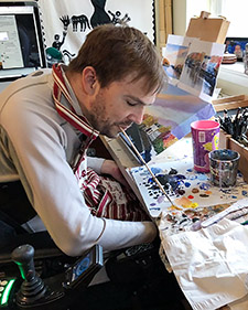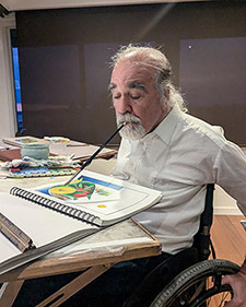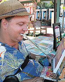 Chris, paralyzed from the chest down after a diving accident, sought out a new purpose and discovered mouth painting. His iron will and perseverance shine through in his captivating paintings, capturing the calm and beauty of coastal Florida. A MFPA scholarship recipient since 2010, Chris was chosen to illustrate a children’s book about the late Team USA Paralympian, Nick Springer. Chris is a self-avowed motorhead, and when he is not painting, you can find him at car shows and rallies.