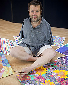 Tom, born with limb difference due to thalidomide, uses his mouth, feet, and chin for daily tasks, including painting. His graphic works exhibit a high degree of perfection, with a precise, ornamental style, vibrant strokes, and rich colors inspired by nature. Tom joined MFPA in 1986. He is now a Full Member serving on the MFPA board. Tom is distinguished by his commitment to people with disabilities, and his philanthropic efforts earned him the investiture as an Officer of the British Empire in the 2025 King’s Birthday Honours.